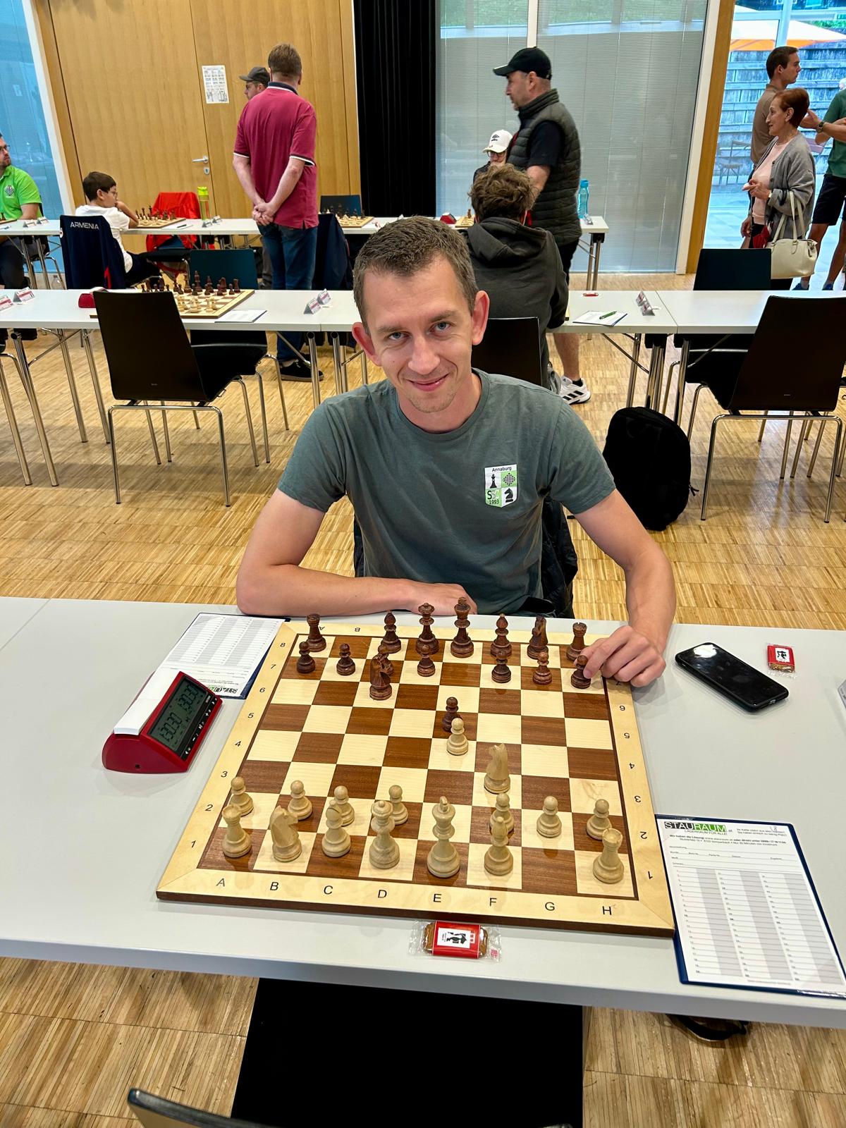 Ich weilte in Innsbruck (Österreich), um meine Kräfte mit teils sehr starken Gegner zu messen. Das Turnier startete am 23.08.2025 mit insgesamt 56 Teilnehmern in der A-Gruppe (>1800 ELO). Ich erhielt gleich in der 1. Runde den GM Nikolaus Stanec (SC Donaustadt, ELO 2452), der am Ende doch eine Nummer zu groß war. Allerdings konnte ich die Partie knapper als vielleicht gedacht gestalten. Bis zum 39. Zug halte ich im Leichtfigurenendspiel die 0,00, übersehe im letzten Zug vor der Zeitkontrolle jedoch eine Fesslung. Das war nicht weit weg vom halben Zähler gegen einen GM. In Runde 2 lehnte ich ein Remisangebot von Peter Platzgummer (PSV Tirol, ELO 1894) ab und opferte just in dem Moment eine Figur. Peters Figuren standen sich für den Moment zwar gegenseitig auf den Füßen, allerdings brauchte er auch nur wenige Züge, um sich zu koordinieren und ich verblieb mit einer Ruine. Das hatte ich völlig falsch eingeschätzt. In der Nachmittags-Runde nahm ich ein geplantes Bye, um mir ein wenig Innsbruck anzusehen.